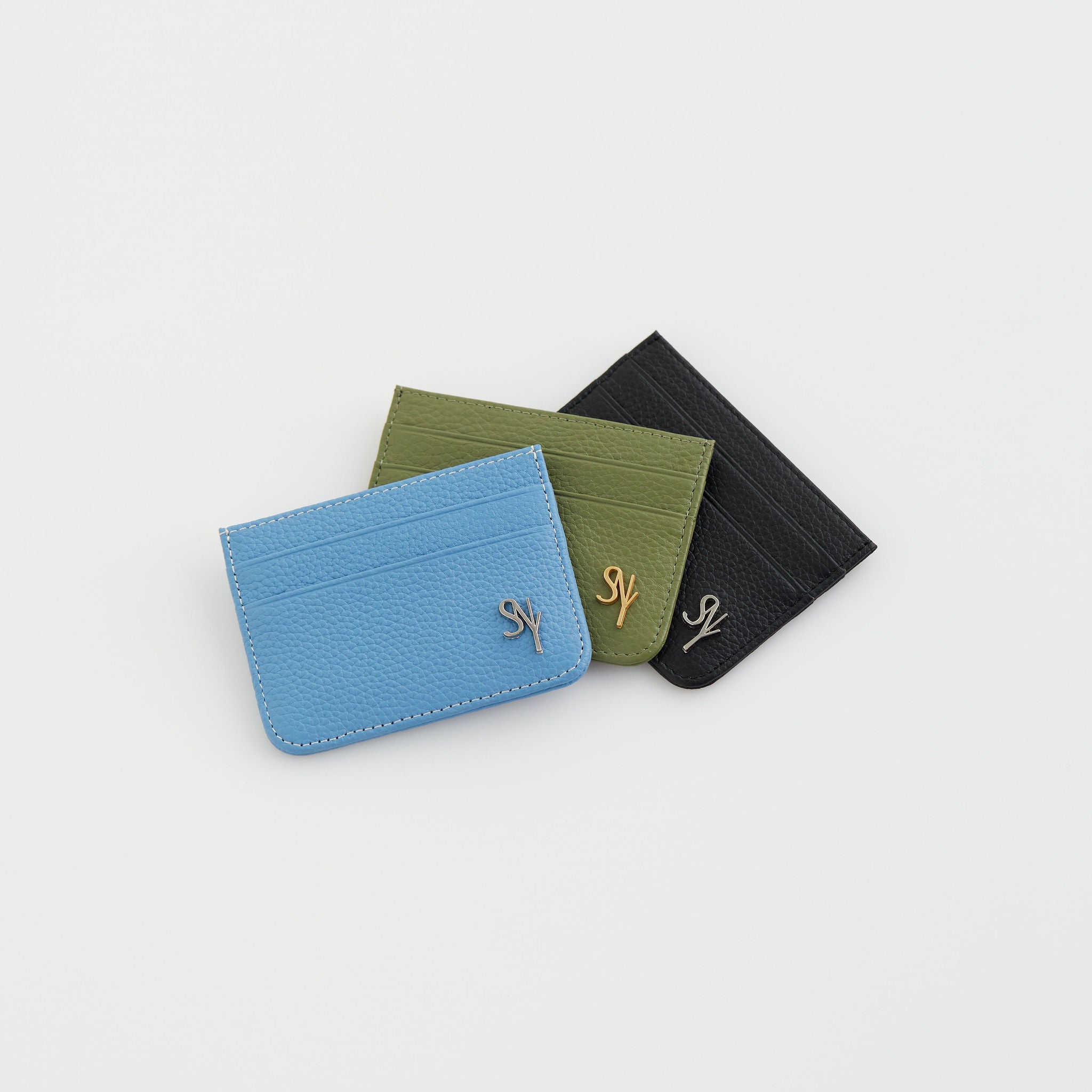The Motif Cardholder. This cardholder is made from full-grain leather, the motif sits neatly at the bottom right corner, and has four card slots with a center compartment.
