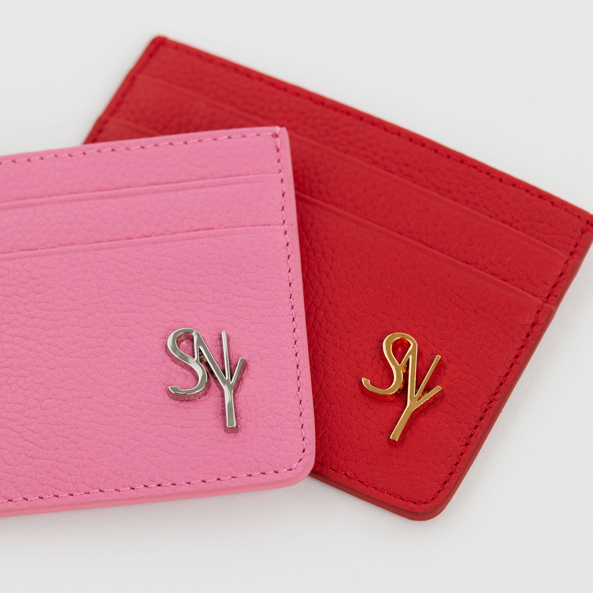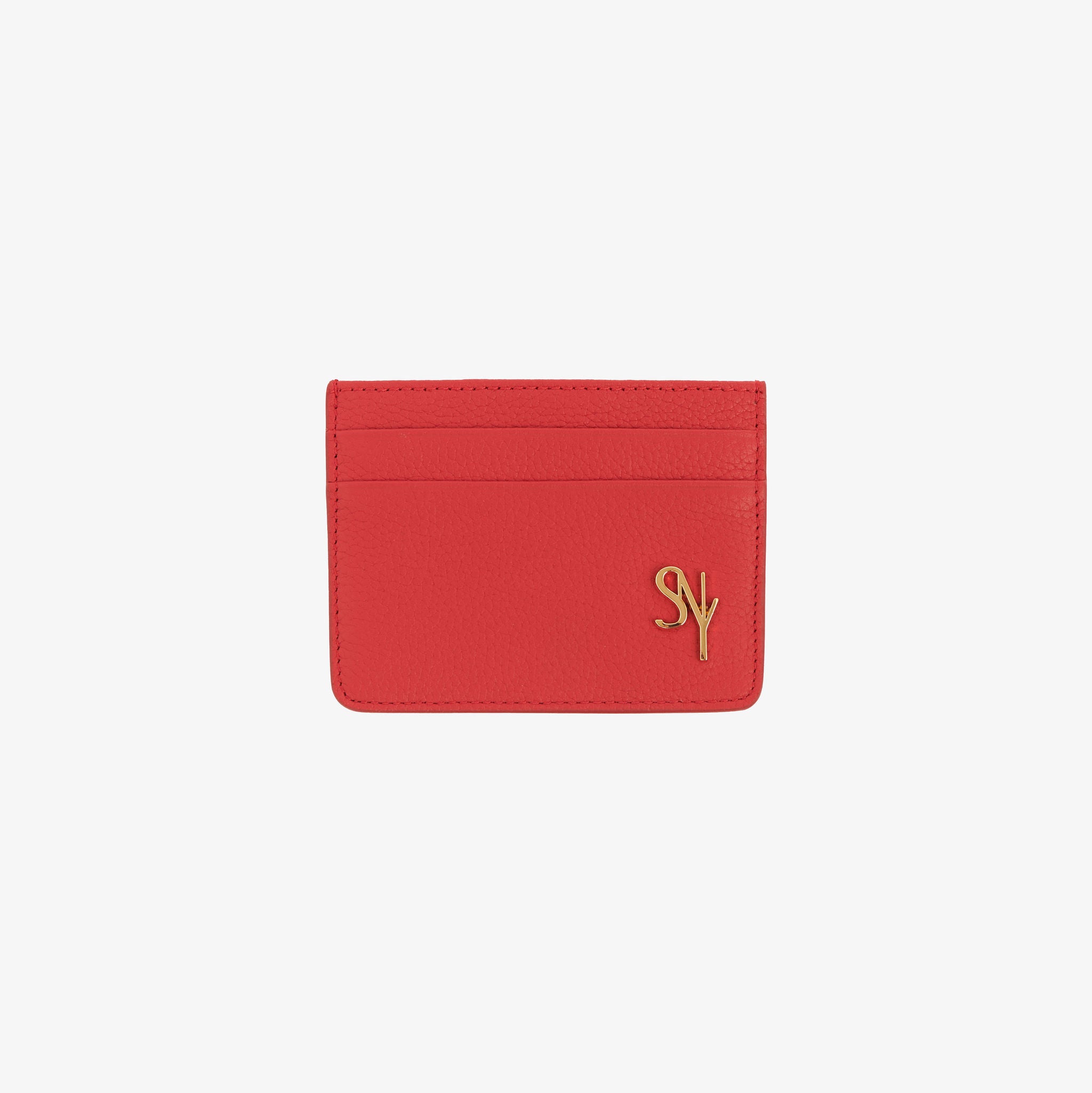 The Motif Cardholder. This cardholder is made from full-grain leather, the motif sits neatly at the bottom right corner, and has four card slots with a center compartment.