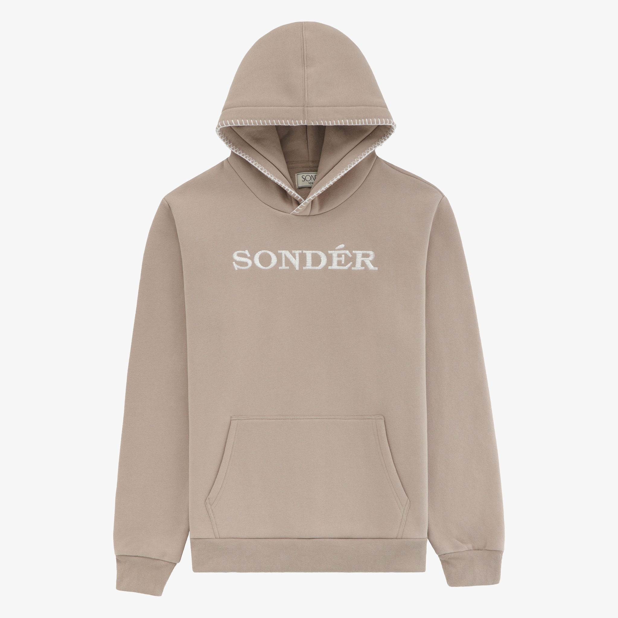 Sondér ensures that their apparel is made to a high standard of quality and craft. Introducing our staple hoodie detailed with a blanket stitch across the hood with SONDÉR embroidered in the center chest.