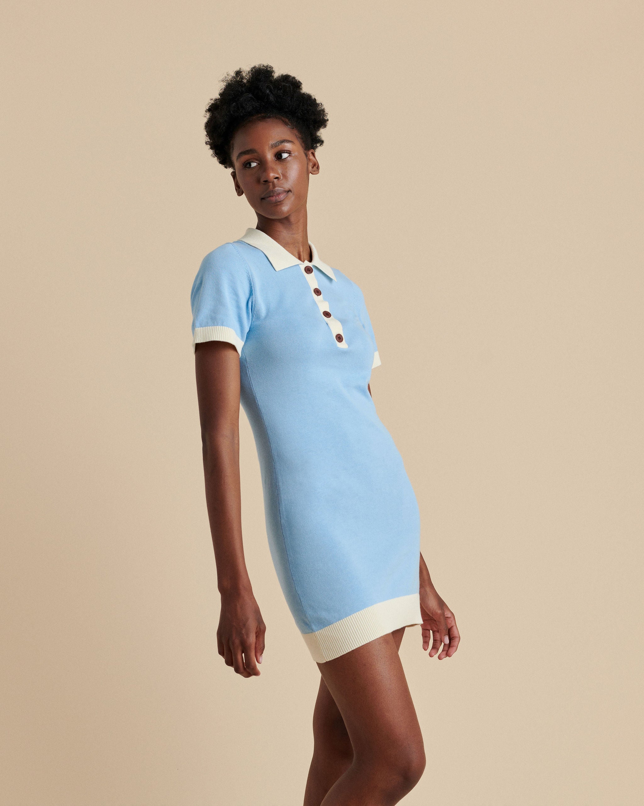 Inspired by a boat ride on Lake Como, this dress is made from a soft cotton blend that will accentuate your curves in a tasteful manner. Detailed with a 4 button placket and ribbed finishes, the styling possibilities are endless.