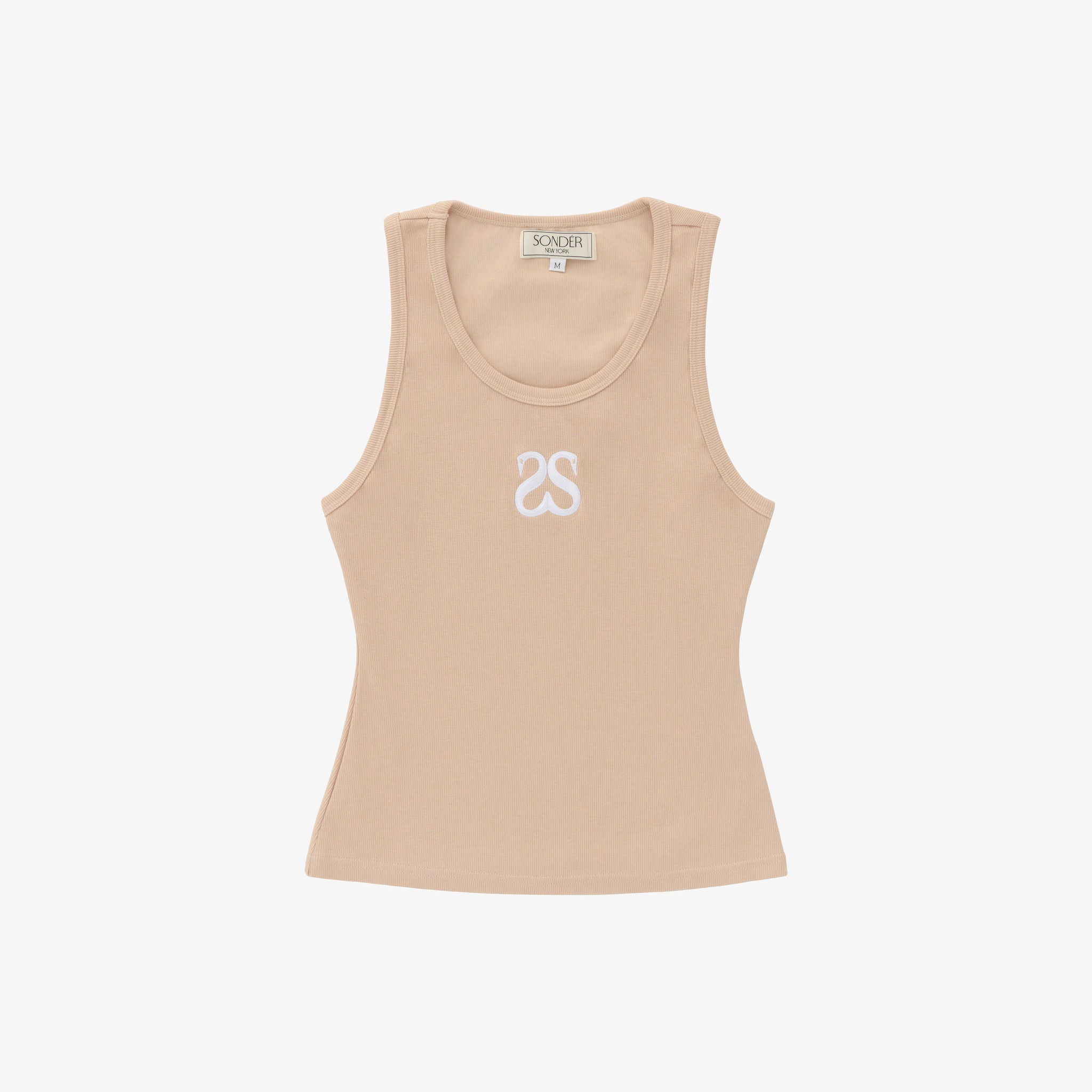The Swan tank is embroidered with the house's 'Swan' logo. Made from a stretchy cotton jersey that's ribbed for a textural feel that stops right at the waist.